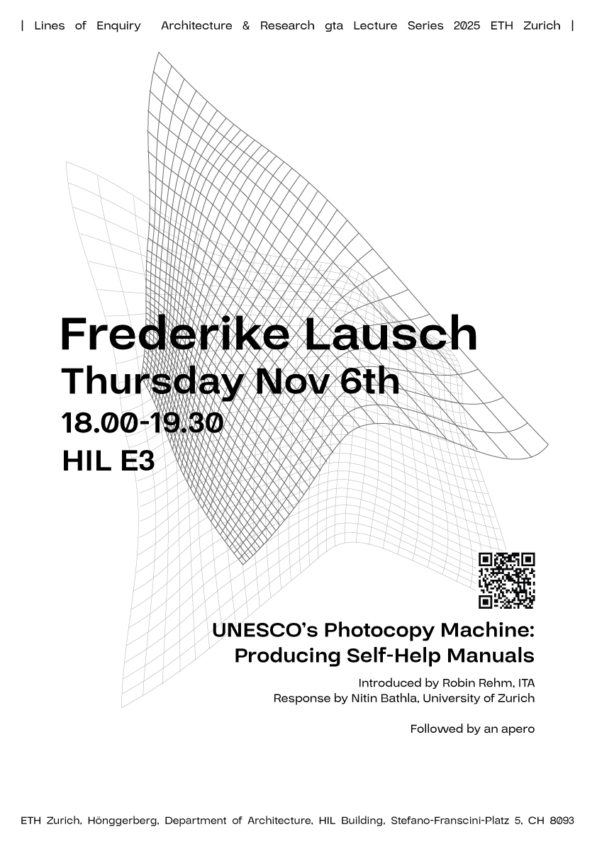 Hosted by the Institute for the History and Theory of Architecture (gta) at ETH Zurich, Lines of Enquiry is a new lecture series that provides a platform for postdoctoral researchers to share their current work. Focusing on original and critical approaches to architecture and its histories, the series invites scholars to present emerging architectural research and experimental methodologies. Lines of Enquiry aims to open up space for dialogue and exchange with colleagues and students of the Department of Architecture at ETH Zurich.